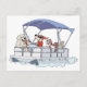 Roscoe relaxa com seus botões no lago em seu barco de pontoon.