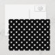 Um clássico padrão de bolinhas pretas e brancas em um cartão postal em branco.