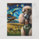 Um poodle steampunk em estilo Van Gogh com patos no campo