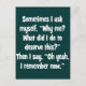 Já se perguntou por que coisas ruins acontecem a você? Isto dá-vos uma resposta engraçada: "Às vezes me pergunto, "Por que eu? O que eu fiz para merecer isso?" Então eu digo, "Ah, sim, eu me lembro de você."