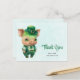 Cartão postal de agradecimento com uma ilustração verde fofa de um porco em pé sobre as patas traseiras, vestido com chapéu, colete e calças elegantes. Muito adorável.