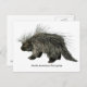 Uma pintura digital de um porco-espinho e texto lendo "Porcupine Norte-Americano". Um porco-espinho é qualquer uma das 29 espécies de roedores de várias famílias. Os Porcupinos são indígenas das Américas, do Sul da Ásia e da África. Os porquinhos são o terceiro maior dos roedores, atrás da capybara e do castor. A maioria dos porquinhos tem cerca de 25-36 pol. (63-91 cm) de comprimento, com uma cauda de 8-10 pol. (20-25 cm) de comprimento. Pesando entre 5,4 e 16 kg (12-35 lb), são arredondados, grandes e lentos. Porcupinos vêm em vários tons de marrom, cinzas, e o branco incomum. A proteção espinhosa de Porcupines se assemelha à dos ouriços e echidnas não relacionados. O nome porcupina vem da espinha porcina do meio francês (porco espinhado) Um nome regional americano para o animal é porco-porco. O porco-espinho norte-americano, Erethizon dorsatum, tem a faixa mais setentrional de todos os porquinhos do mundo. As evidências indicam que eles só fizeram parte da fauna norte-americana, sincemilhões que migraram do norte da América do Sul há cerca de três milhões de anos. Porquinhos têm de 25 a 31 polegadas de comprimento recobertos por pêlos e colchas de comprimento variável, exceto nos pés e nariz. As pontas dos pêlos longos da guarda são mais leves e dão a casaco de amarelo ou branco. O cabelo e uma grossa camada de gordura corporal ajudam a manter o porco-espinho quente durante o inverno. A cauda é extremamente muscular e adaptada à ajuda à escalada e à defesa. A superfície superior da cauda é muito coberta de colchas, enquanto a parte inferior é coberta por pêlos cerrados usados para escalar. A pelagem de porco-espinho encharcada o torna único entre os mamíferos norte-americanos. As coinas cobrir o corpo, exceto nas pernas e na barriga. As colchas são pelos modificados, que possuem hastes microscópicas nas pontas e são preenchidas com uma matriz esponjosa. As calhas de diferentes partes do corpo variam em comprimento, flexibilidade, cor, diâmetro do eixo e comprimento da barba. O peso médio de uma porquina adulta masculina varia de 15 a 18 libras, mas alguns indivíduos podem pesar até 30 libras. As fêmeas adultas pesam cerca de 2-4 libras menos do que os machos. Porcupina tem excelentes sentidos de cheiro, audição e paladar, mas relativamente fraca visão. Os Porcupinos fazem uma grande variedade de sons que vão de whimpers a gritares, dependendo das circunstâncias. A reprodução ocorre nos meses de outono, do final de setembro ao início de novembro. Machos que procuram fêmeas receptivas ampliam suas gamas de casas até cinco vezes o tamanho normal. Se mais de um macho se interessar pela mesma fêmea, lutará pela oportunidade de acasalar com a fêmea. Os machos usam os dentes incisivos e as colchas na luta, e geralmente é o maior e mais pesado macho que ganha dominação. O macho em reprodução então esfrega a fêmea com urina. Se não estiver pronta para acasalar, ela sacude a urina e sai. Se estiver pronta, ela fica e o macho se monta na postura tradicional com a fêmea à frente e o macho na retaguarda. Ela vai enrolar a cauda sobre as costas, cobrindo a maioria das colchas. Os homens atingem a maturidade aos 24 meses e as mulheres aos 12 meses. Após um período de gestação de cerca de 210 dias, apenas um solteiro jovem é nascer. O período de gestação é extremamente longo para um roedor, o dobro do tempo para um castor. Ao nascer, os jovens pesam entre 1 e 2 quilos e têm cerca de 10 polegadas de comprimento. Seus olhos estão abertos e seu corpo coberto de longos pêlos e colchas de preto-cinza. Em questão de horas as colchas secam e servem de proteção. A porcupina jovem é então capaz de seguir sua mãe, embora os jovens não consigam subir árvores grandes por várias semanas. Os jovens conseguem comer alguma vegetação depois de algumas semanas, mas a fêmea continua amamentando os jovens por 3,5 meses. Durante o verão, os jovens ficam perto das mães, aprendendo sobre as áreas de pouso e árvores de comida, mas no final do verão começam a passar mais tempo separados. Em outubro, quando as companheiras de novo, os jovens estão completamente desmamados e caminham para enfrentar o inverno sozinhos. Os Porcupines utilizam cavidades naturais, como cavernas de rocha, toras ocas e árvores, ou até a vegetação mais espessa de uma árvore como as plantações. Em áreas sem queda de neve, os jardins não são muito usados. Os Porcupines permanecem ativos durante o inverno. Porcupinos são principalmente arborícolas, e passam a maior parte do seu tempo no inverno se alimentando em árvores. Enquanto alpinistas poderosos, os porquinhos caem de árvores. Trinta por cento dos animais examinados em um estudo mostraram evidências de fraturas cicatrizadas indicando que caíram das árvores. Ao subir, o porco-espinho usa como suporte as cerdas rígidas na superfície inferior da cauda. O animal tem garras frontais longas e curvas que também ajudam a subir. O latido interior (camadas floema e cambium) de agulhas de spruce, pássaro, hemlock e spruce são as grandes comidas de inverno para a porcupina que vive no Alasca. Na primavera e no Verão, comem-se gomos e folhas verdes jovens de pássaros, aspentes, madeira de algodão e salgueiro até que os níveis de taninos se acumulem demasiado elevados para que o porco-espinho tolere. Por serem vegetarianos e a maior parte da matéria vegetal ser muito baixa em sódio, os porquinhos precisam de sódio adicional no sangue para equilibrar os níveis de potássio celular. Como resultado, os porquinhos buscam fontes de sal como os porcos naturais, cola que liga o contraplacado, transpiração humana em ferramentas, sal rodoviário, e algumas tintas. Porcupinas também se alimentam de galhadas e ossos de animais mortos para obtenção de sódio e cálcio. A maioria dos carnívoros não deixaria passar uma refeição de porcupina. No entanto, um encontro entre um jovem p