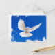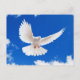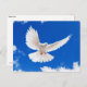 Cartão de animais mostrando uma pomba branca em voo no céu nublado.