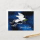 Personalize este Cartão-Postal Único "Um Tipo" de Porta! Ela apresenta uma pomba branca serena voando entre as estrelas Carregando um ramo de oliveira com fitas prateadas fluindo, desejando a todos..."Paz na Terra"!