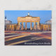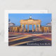 Uma fotografia noturna do Portão de Brandemburgo, em Berlim, com rastros de trânsito, figura neste cartão-postal. O tamanho da placa é de 13,9 cm x 10,6 cm e é impresso no estoque da placa de 325 gsm ultra-pesada com acabamento de brilho.