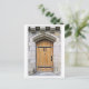 Cartão do turista do vintage de uma porta gótico de madeira de Yale com a letra F nela