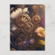 Porta do Steampunk com engrenagens metálicas e flores roxas, bela arte ai.