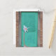 Uma porta de turquesa em um prédio de utilidade foi bombardeada com uma flor de papel. Dias depois a flor se desintegrou devido à chuva. Esta foto é realmente apenas um momento no tempo. O cartão faria uma excelente que mudamos, Nova Casa, vir ver nossa nova reforma ou até convidar seus amigos para uma festa de pintura. As escolhas são infinitas para esta fotografia divertida. Esta é uma foto original de Kristin Corlett, vendida através do Compro KNS Card.