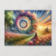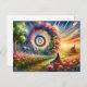 Cartão Postal Portal Floral de Cabelo Vermelho Surreal