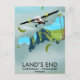 Poster de voo "End Cornwall viagem" de Land com penhascos e rochas num mapa da região do Reino Unido.