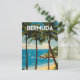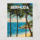 Design postal do Poster de viagens das Bermudas. Bermudas é um território insular britânico no Atlântico Norte, famoso por suas praias de areia rosa, águas límpidas cristais e mistura única de cultura britânica e insular. Conhecido pelo seu mergulho de naufrágio, locais históricos e visões costeiras impressionantes, é um paraíso para entusiastas do exterior e do mar.