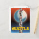 Poster de viagens de estilo de vintagem de polo de Seattle Totem de um lindo e velho Totem em frente a um grande cheio Moon.