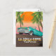 Poster de viagens de La Jolla Cove California com um belo e velho carro retrorreflector por algumas palmeiras alto balançando.