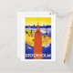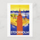 Poster de viagens vintage restaurada e melhorada digitalmente mostrando a torre da prefeitura de Estocolmo e a vista de pássaros do porto. Levantamento de tesouros e lágrimas. Cores corrigidas. Imagem cortesia da Biblioteca do Congresso.