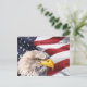 Poderosos cartões postais patrióticos americanos temáticos com majestoso retrato da águia e balançando a bandeira dos Estados Unidos em segundo plano com sua mensagem ou informações comerciais do lado do escrevendo. Promova um produto, serviço ou apresente sua mensagem aos veteranos das estrelas e listras em vermelho, branco e azul.