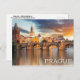 O pôr do sol cria um brilho de tirar o fôlego através do rio Vltava e da Ponte Charles neste cartão postal de Praga.