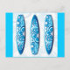 Mostre o seu amor pelo surf. 3 pranchas de surf alinhadas esperando para pegar as ondas. Estas pranchas de surf azul celeste são decoradas com um tema floral retrô dos anos 60. Evoca um sentido de diversão e capricho.
