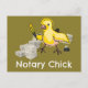 Anuncie o seu notário móvel ou agente assinante de empréstimos com um toque de humor. Design de Whimsical apresenta um pintinho amarelo giro cercado por pilhas de documentos e uma garrafa de tinta de vazio de jato. Ela está segurando uma delicada colina amarela, sobre o slogan "Pintinho Notário". Faz um presente de excelente para qualquer profissional notário que presta um serviço valioso ao público.