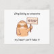 Esta design hilariante apresenta uma preguiça adorável segurando um sinal de stop com a mensagem brincalhona, "Pare de ser tão incrível, meu coração não aguenta." A expressão bonitinha da preguiça e as letras corajosas e coloridas fazem uma design divertida e atraente que certamente iluminará o dia de qualquer um. Quer sejas fã de trocadilhos, preguiças, ou apenas gostes de mostrar do teu lado do bobo, esta design é a adição perfeita à tua coleção. Então, vá em frente e adicione algum humor à sua vida com nossa design de preguiça.