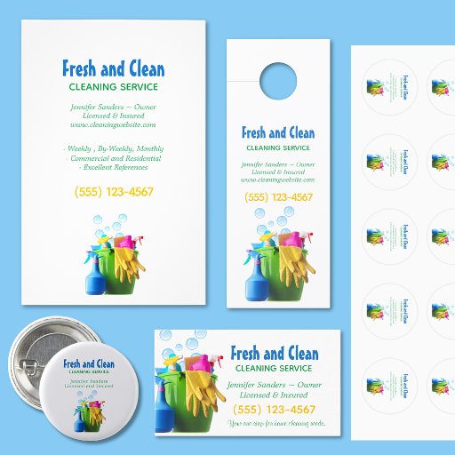 Cartões postais do Serviço de Limpeza do Balde de Fornecimentos. Personalize isso com suas próprias informações de negócios para torná-las suas!