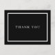 Cartão de agradecimento empresarial preto e branco moderno e simples. Perfeito para uma ampla gama de profissões, incluindo; cabeleireiros, consultores de beleza, esteticistas, spas, artistas de maquiagem, salões de unha e estilistas, para citar alguns! Personalize com suas informações de contato no verso. Criado por Thisisnotme©