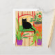 Cartão Postal Preto Gato na Pintura da Flor da Cadeira
