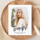Trendy, moderno obrigado de graduação, você faz o cartão-postal com o dentro de fotografia do formando de um quadro texturizado com "Obrigados!" em um roteiro manuscrito preto. Personalize a frente do obrigado de graduação que você faz no cartão-postal, adicionando o nome do formando e o ano de graduação. O cartão postal reverte para exibir seu endereço de devolução e mensagem personalizada.