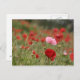 Primavera com papoila vermelha e uma papoila rosa no meio da grama verde.