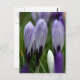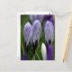 Um cartão-postal Primavera com crocodilos roxos prestes a abrir. Na linguagem das flores, o croco significa alegria, alegria e alegria.