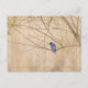Um belo pássaro azul é empoleirado em uma árvore salgueira em um primavera suavemente iluminado.