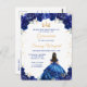 Este elegante e glamouroso convite de aniversário da Quinceañera apresenta uma bela princesa com cabelo escuro num vestido azul escuro. O texto combina o script manuscrito e as fontes sans serif modernas para um aspecto elegante e sofisticado. Os arranjos florais e o confete de ouro criam a mistura perfeita de rústicos e quicos. Gráficos por www.etsy.com/uk/shop/SunflowerDayLove