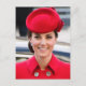 Catherine, Princesa do País de Gales com um chapéu vermelho e um vestido de casaco