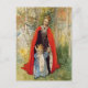 Retrato da mãe em uma capa de "capuz vermelha" vestindo uma coroa de mãos dadas com sua garotinha. Vintage watercolor pelo artista sueco Carl Larsson.