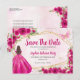 Magenta Moderna Blush Quente Rosa Dourado Brilho Brilhante Borboleta Floral Rosa Princesa Quinceañera Aniversário Salvar Data Anúncio