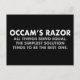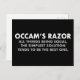 Razor de Occam é o princípio científico que diz que todas as outras coisas, sendo iguais, a solução mais simples tende a ser a melhor. Poster de geek de ciências excelente para um cientista ou sala de aula de um professor de ciência. Quanto mais suposições você tem que fazer, mais improvável será uma explicação.