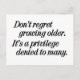 Não se arrependa de envelhecer. É um privilégio negado a muitos. Desconhecido