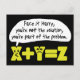 Nossos pequenos personagens matemáticos fazem um trocadilho bobo. Aproveite X Y e Z neste cartão postal do Problema engraçado.