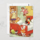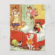 Trabalho de arte de safra bonitinha mostrando vários gatinhos em roupas pulando em uma cama e jogando travesseiros.