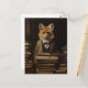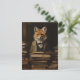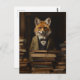 A imagem retrata uma raposa antropomórfica vestida em traje formal, sentada atrás de uma mesa cercada por pilhas altas de livros antigos. A raposa veste uma jaqueta típica de terno verde-oliva, uma camisa branca nítida, um colete com padrão, e uma gravata preta de arco bem amarrada. Sua expressão é calma, mas afiada, com olhos inteligentes que sugerem profundo conhecimento e curiosidade. O cenário é pouco iluminado, com luz quente e ouro caindo suavemente sobre a cena, evocando a atmosfera de uma antiga biblioteca ou estudo. Os livros vestidos acrescentam o sentido da história e da sabedoria, como se a raposa fosse um estudioso ou professor envolvido em pesquisas ao longo da vida.