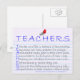 "Professores" é um poema acrostico que Sylvia L. Green escreveu para mostrar apreço aos professores e lançar luz sobre tudo o que fazem. É ideal dar uma semana de apreciação do professor, graduação, aniversários do professor, Ação de Graças, ou qualquer hora que você queira dizer "obrigado você" a um professor.