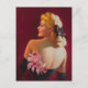 Cartão PinUp clássico mostrando a parte de trás de uma garota Pin-Up bonito vestindo um vestido preto sem cordas cortado com orquídeas, pintado por Art Frahm (1907-1981)