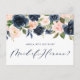 Você será minha madrinha de casamento? Cartão de apresentação do partido floral feminino e rústico, com flores roxas e azuis marinhos e verde. Personalize a adição de uma mensagem e o nome do destinatário. Este cartão de madrinha de casamento é perfeito para o outono e casamentos no inverno.