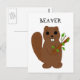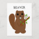 Um castor de desenho bonitinho com dentes grandes na frente, segurando um monte de paus e galhos que ele coletou para sua barragem de castor. Um cartão postal bonito com este animal da floresta.