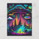 Uma cena de acampamento de OVNI neon no céu noturno.