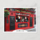 Cartão postal do famoso pub vermelho com cestas de flores penduradas no distrito de Temple Bar em Dublin, a capital da Irlanda, com uma borda branca e o texto 'Dublin'.