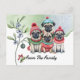 Cartão Postal Pug Merry Christmas watercolor