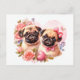 Um Par Cortado De Dias de os namorados Puga Cartão-Postal Saudável Com Rosas Rosa