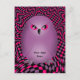 Coruja punk em roxo sobre fundo de pranchas de xadrez em roxo, rosa quente e preto em uma placa posta bonita.