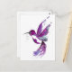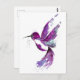 um trabalho de arte de aquarela decorativa de um pequeno beija-flor roxo colorido espalhando suas asas e levitando em um cartão postal.