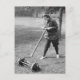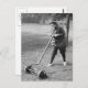 Mulher no sangue que corta grama usando cortador de relva de empurra. Provavelmente 1910 ou 1920.